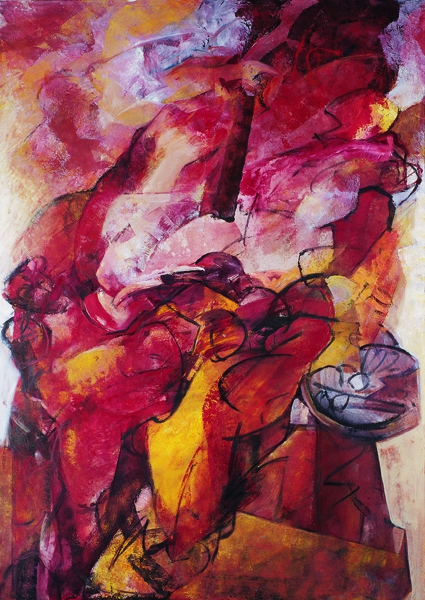 Im Feuerschein / In the light of fire, 2004, 200 x 280 cm, mixed media on canvas